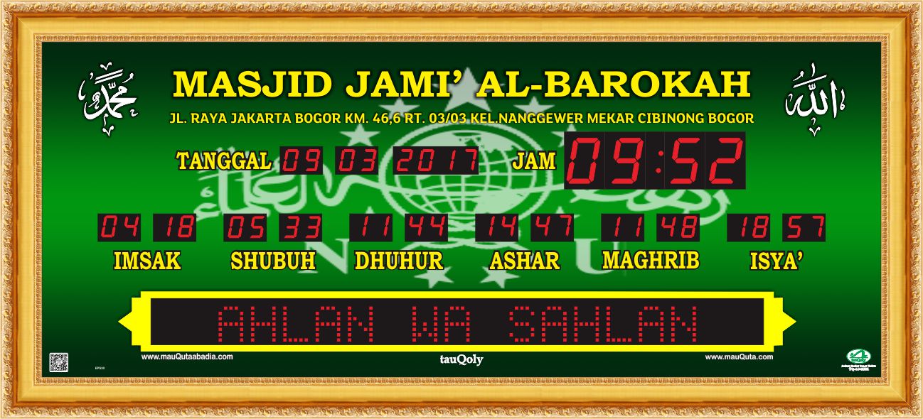 Jadwal Sholat Digital TauQoly TQ-08Q15-NMK MASJID JAMI AT-TAQWA